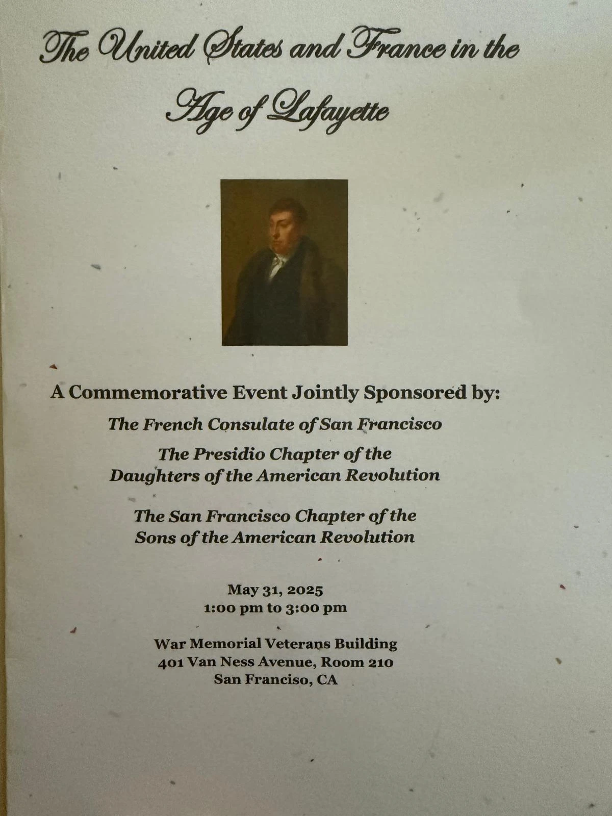 On May 31st, Culture Without Border had the great honor of attending the commemorative event organized by the Consulate General of France in San Francisco, marking the bicentennial of General Lafayette’s Farewell Tour of the United States (1824–1825).